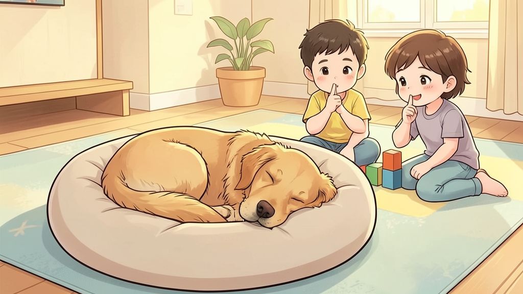 Dieser Satz kommt von der Beobachtung echter Tiere. Wenn man einen Hund plötzlich aus dem Schlaf weckt, kann er sich furchtbar erschrecken und vielleicht knurren. Deshalb gilt: Einen schlafenden Hund lässt man immer in Frieden ruhen.